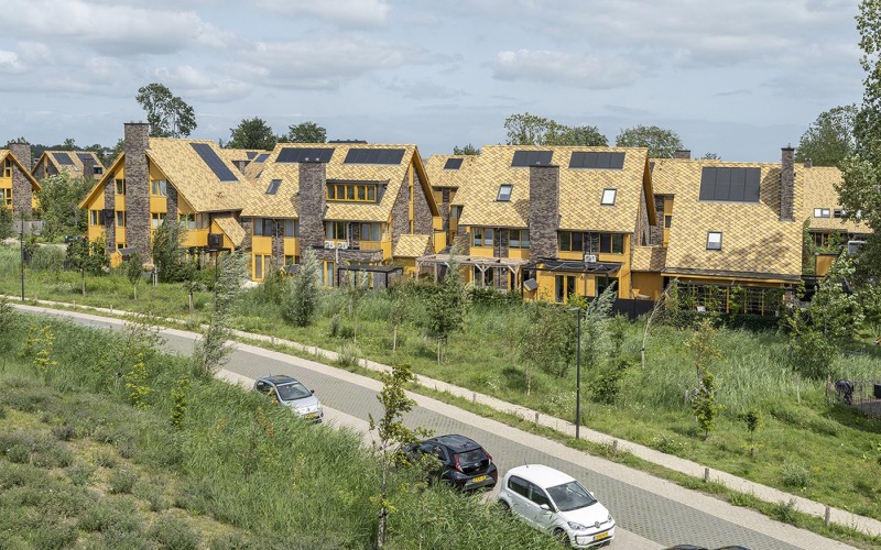 FLOW werd al in een vroeg stadium door ontwikkelaar Reinbouw betrokken om mee te denken over de uitvoering van de Accoya-gevelbekleding. Samen keken we naar optimale verwerking, maatvoering en materiaalgebruik, met als doel verspilling te voorkomen volgens het Lean-principe. Zo konden we de hoge esthetische eisen combineren met een efficiënte, duurzame uitvoering. Het resultaat is een wijk waarin natuur, ontwerp en techniek in balans zijn – en waarin FLOW letterlijk en figuurlijk zijn handtekening heeft achtergelaten.