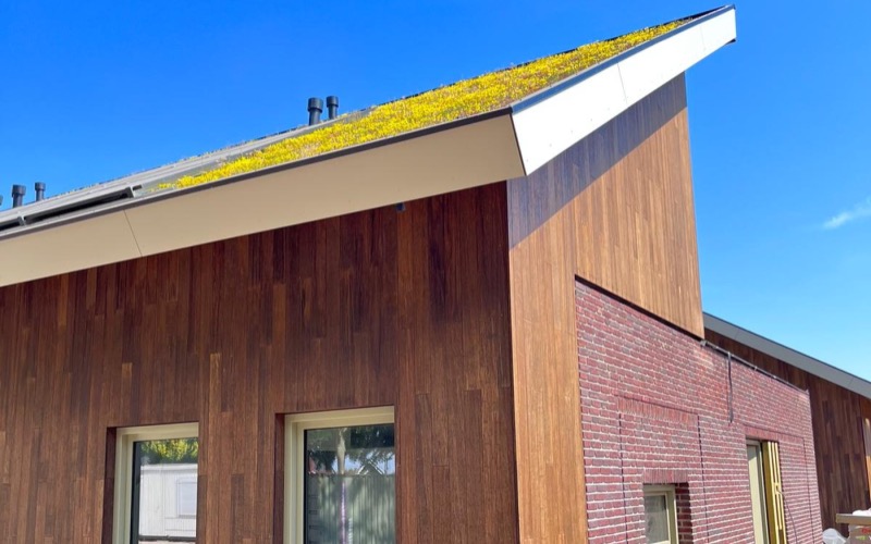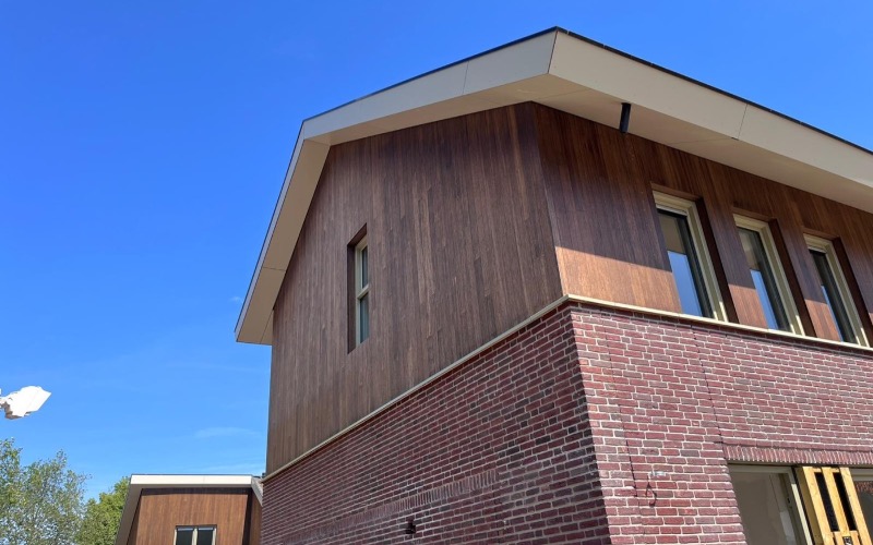 Een belangrijk onderdeel van de woningen van de Bogerd in Uden is duurzaamheid en groen. Het mooie van dit plan is dat het groen je letterlijk boven het hoofd groeit. De daken worden namelijk uitgevoerd als sedumdak. Milieuvriendelijker en groener dan dat ga je het niet vinden. In het verlengde van die gedachte zijn de wanden uitgevoerd als houtskeletbouw met isolatie (HSB-wanden) en bekleden we de gevels met Moso bamboo X-treme Varibo B-closed - BRANDKLASSE B. Alles vanuit de duurzame en groene visie waarmee De Bogerd ontwikkeld is.