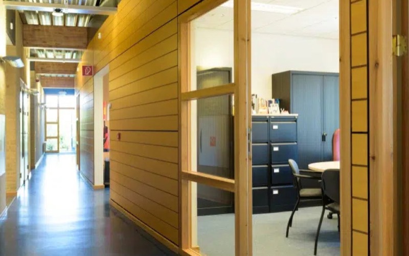 “En nu na al die jaren ziet het er nog uit als nieuw. Er verandert niets aan. De kleur blijft exact hetzelfde, ook buiten. Er komen geen krassen op… het lijkt wel of dit materiaal onverwoestbaar is. Destijds was ik bang dat het zou verkleuren of zou slijten, dat zie je immers toch wel vaak bij kunststoffen. Maar de architect zei al dat we daar absoluut niet bang voor hoefden te zijn en dat het plaatmateriaal jaren en jaren zou meegaan. En daar heeft hij gelijk in gekregen; het ziet er nog uit alsof het gisteren is aangebracht. Al met al hebben we hier een heerlijk gebouw, ook dankzij deze platen.”
